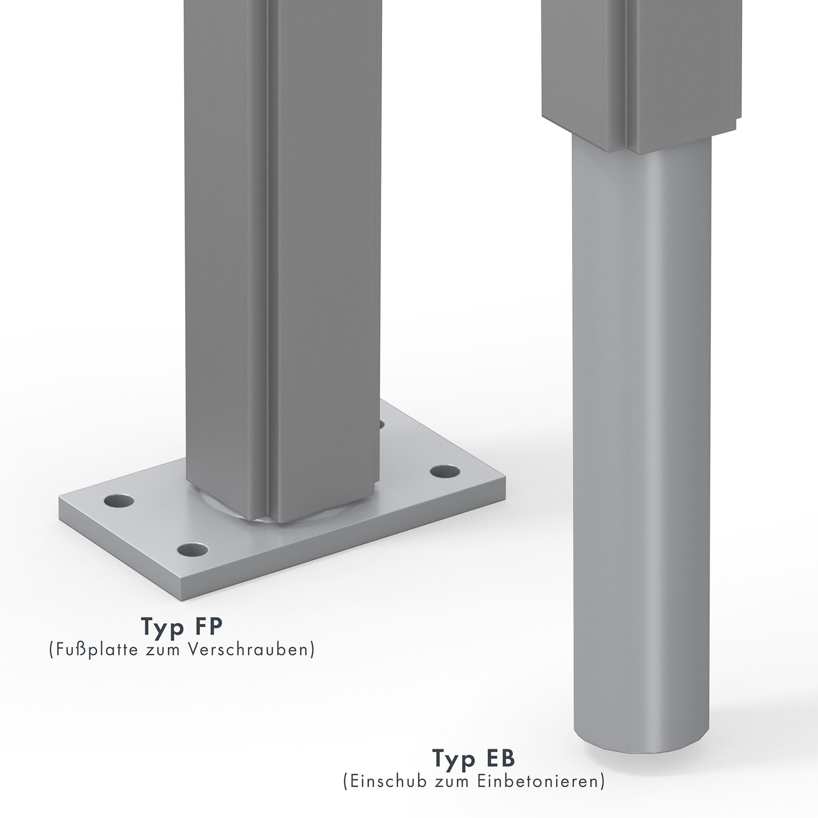Standbeine: mit Standbeinen zum Aufdübeln, mit Standbeinen zum Einbetonieren