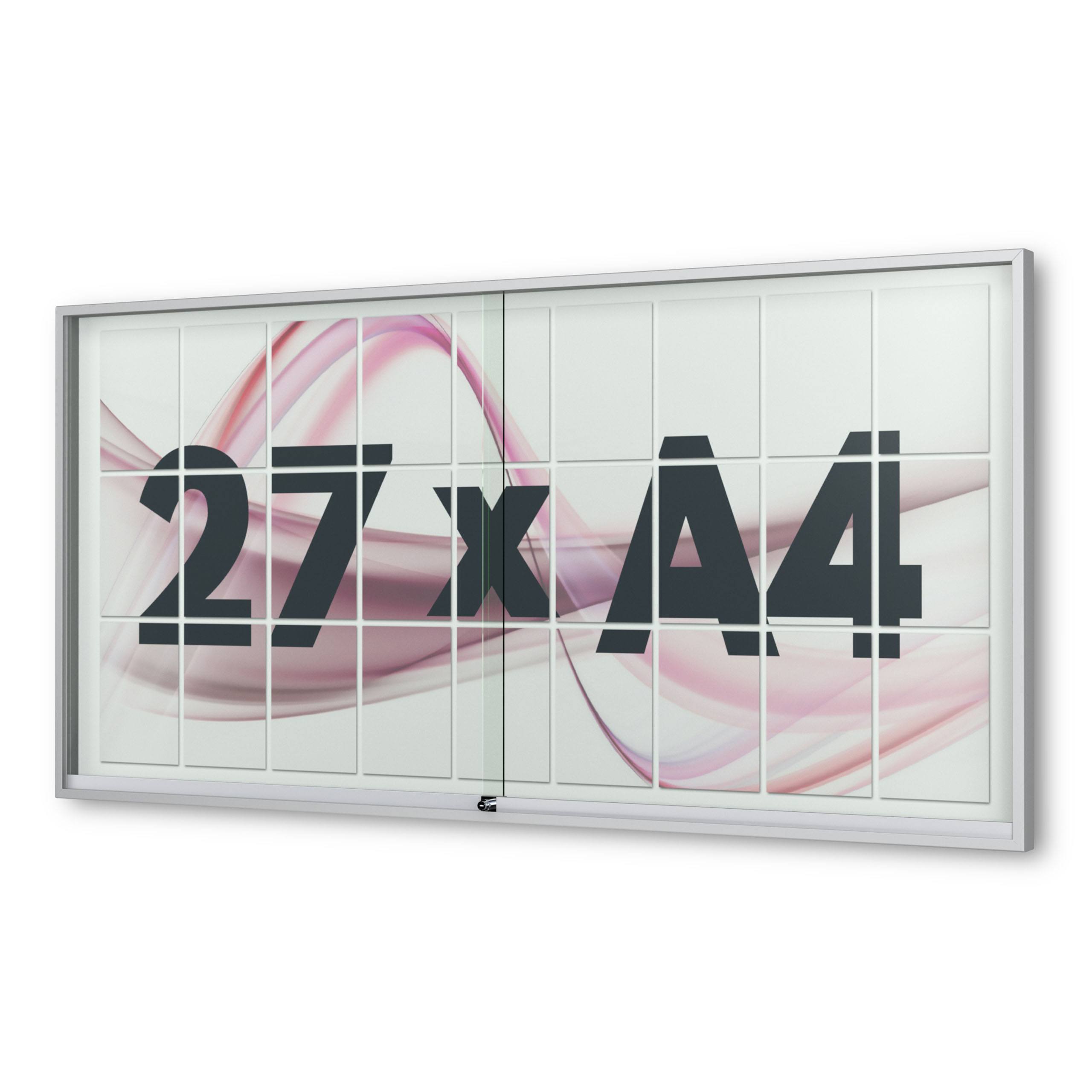 Vitrinen.de ➤ "27 x DIN A4 Schaukasten Fortis mit Schiebetüren - 60 mm Bautiefe"