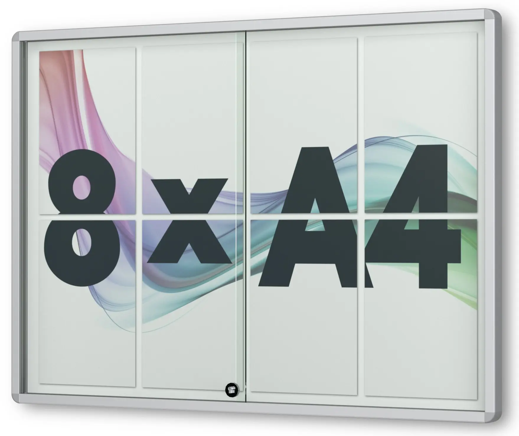 Größe: Flachschaukasten Nexus mit Schiebetüren: 8 × DIN A4 • 925 × 665 mm B/H | Bautiefe: Flachschaukasten Nexus mit Schiebetüren: 30 mm
